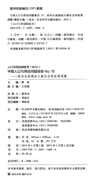中国人口与劳动问题报告(No.15面向全面建成小康社会的政策调整2014版)/人口与劳动绿皮书