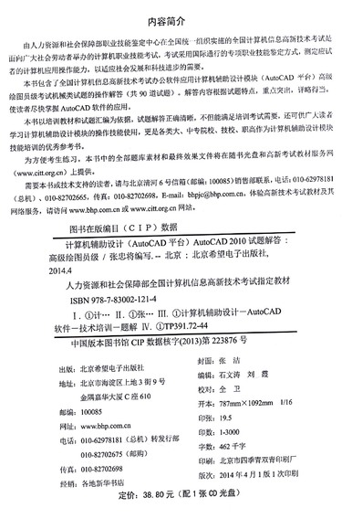 计算机辅助设计<AutoCAD平台>AutoCAD2010试题解答(附光盘高级绘图员级机械专业人力资源和社会保障部全国计算机信息高新技术考试指定教材)