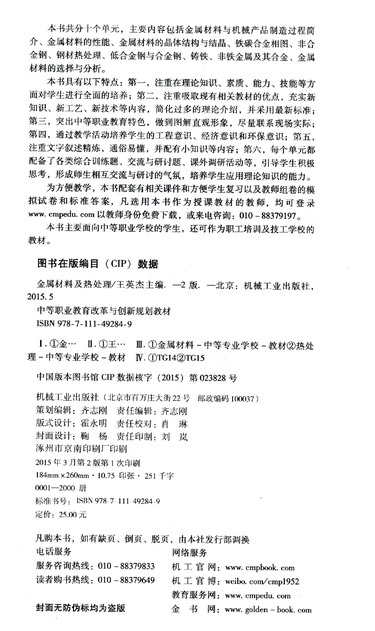 金属材料及热处理(第2版中等职业教育改革与创新规划教材)