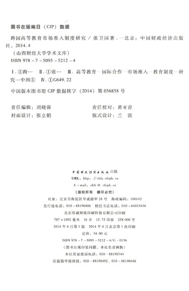跨国高等教育市场准入制度研究/山西财经大学学术文库