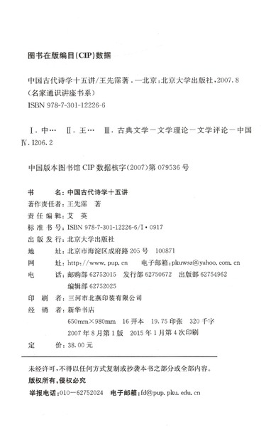 中国古代诗学十五讲/名家通识讲座书系
