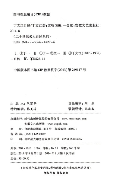 丁文江自述/二十世纪名人自述系列