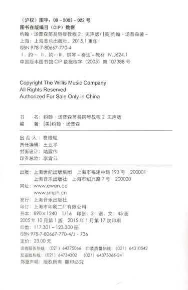约翰·汤普森简易钢琴教程(2原版引进)