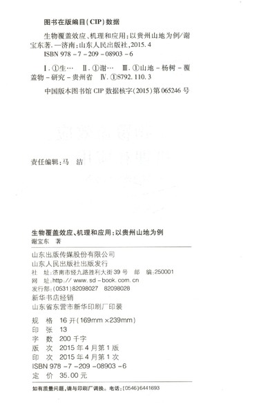 生物覆盖效应机理和应用--以贵州山地为例/临沂大学博士教授文库