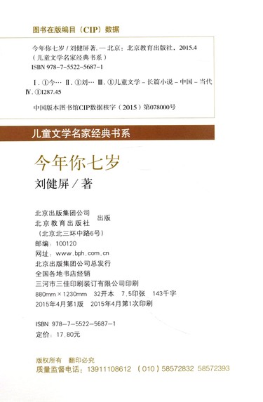 今年你七岁/儿童文学名家经典书系