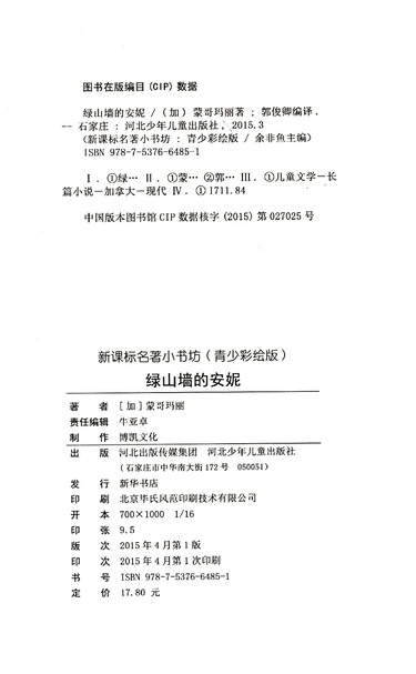 绿山墙的安妮(青少彩绘版)/新课标名著小书坊