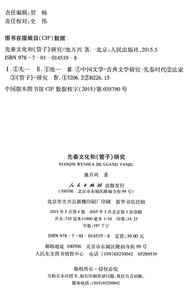 先秦文化和管子研究
