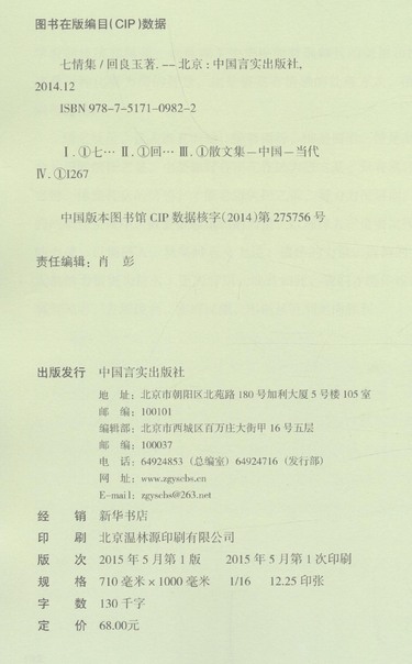 七情集(回良玉散文随笔)
