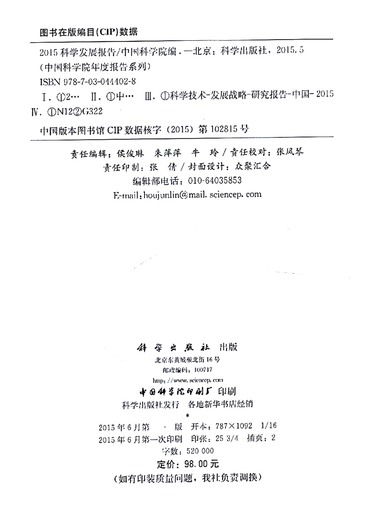2015科学发展报告/中国科学院年度报告系列