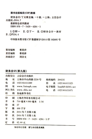 | 出版社 | 立信会计出版社 |