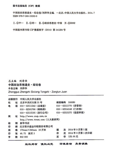 中国政治思想通史(综论卷)(精)