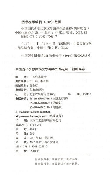 中国当代少数民族文学翻译作品选粹(朝鲜族卷)