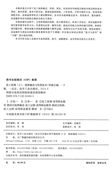 化工原理(上流体输送与传热技术第2版国家示范性高职院校建设规划教材)