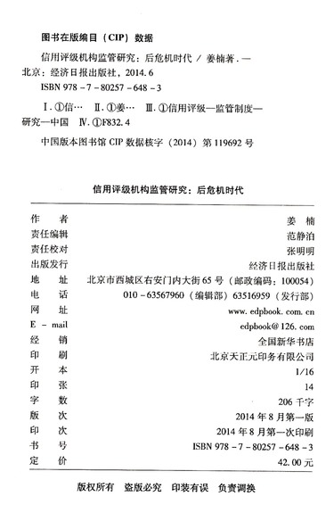 信用评级机构监管研究--后危机时代/经济日报学术文库