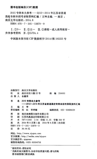 2015专转本大参考(2012-2014年江苏省普通高校专转本招考录取资料汇编)