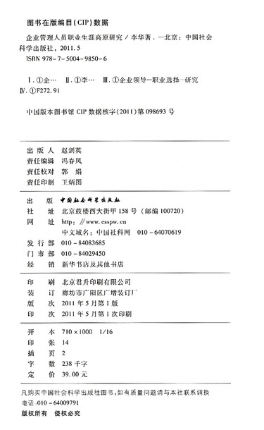 企业管理人员职业生涯高原研究