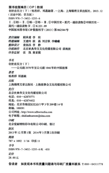 创世在东方(下公元前2070年至公元前1046年的中国故事夏商)/话说中国