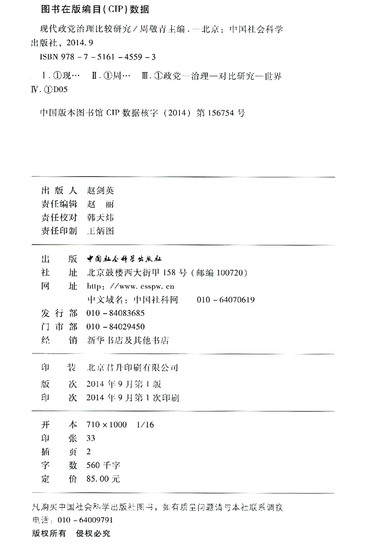现代政党治理比较研究