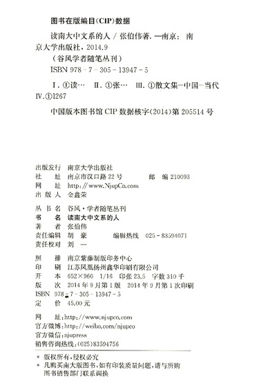 读南大中文系的人/谷风学者随笔丛刊