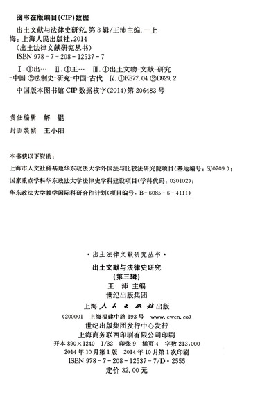 出土文献与法律史研究(第3辑)/出土法律文献研究丛书