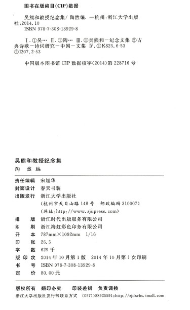 吴熊和教授纪念集(精)