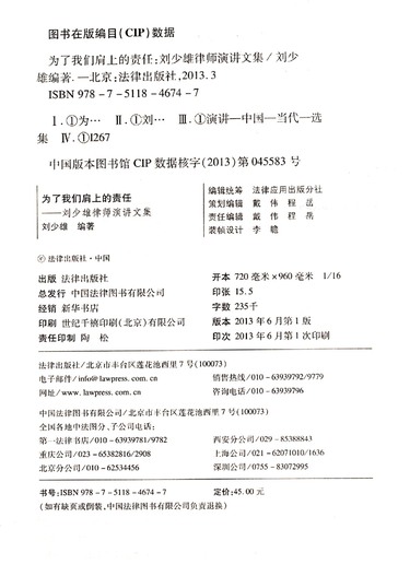 为了我们肩上的责任(刘少雄律师演讲文集)/仁人德赛律师丛书