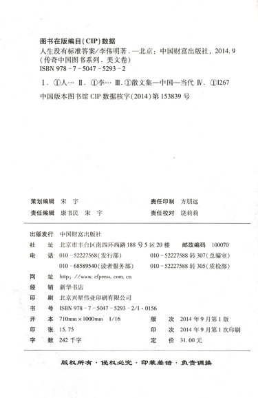 人生没有标准答案/传奇中国图书系列