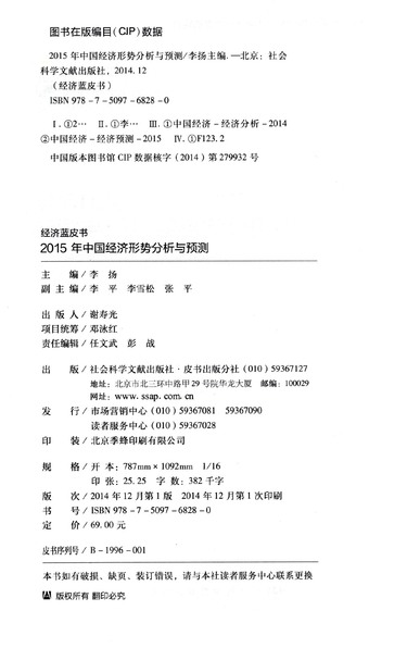 2015年中国经济形势分析与预测/经济蓝皮书