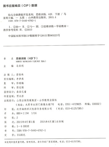 思维训练(6岁下)/幼儿全脑潜能开发系列