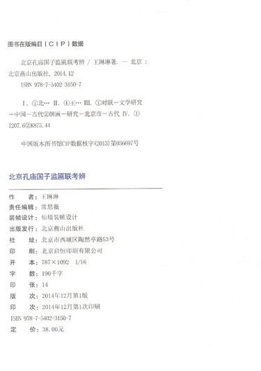 北京孔庙国子监匾联考辨/北京市文物局青年科研丛书
