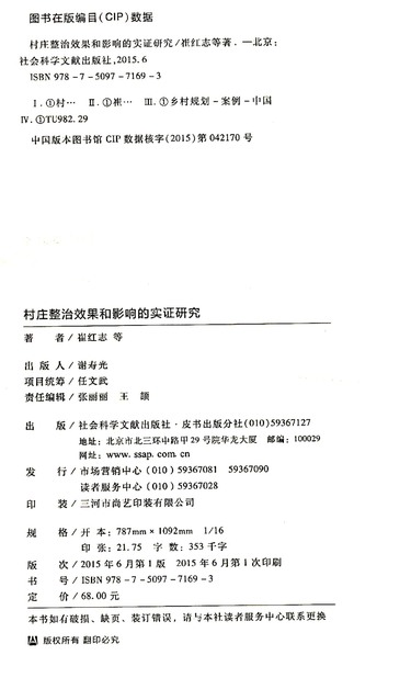 村庄整治效果和影响的实证研究