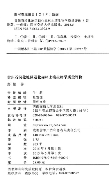 贵州石漠化地区退化森林土壤生物学质量评价/贵州民族大学学术文库