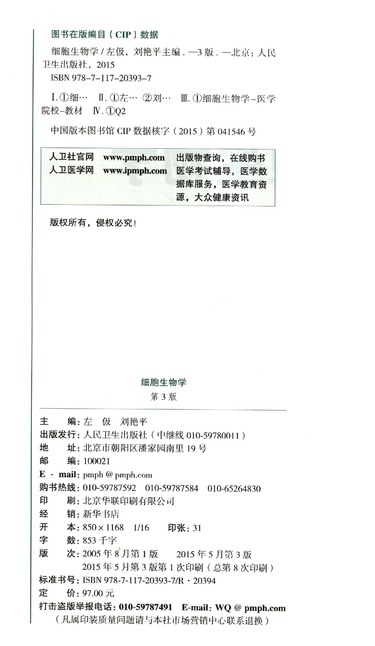 细胞生物学(供8年制及7年制5+3一体化临床医学等专业用第3版全国高等学校教材)