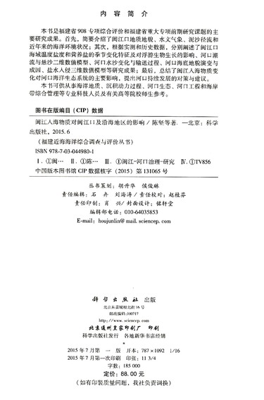 闽江入海物质对闽江口及沿海地区的影响(精)/福建近海海洋综合调查与评价丛书