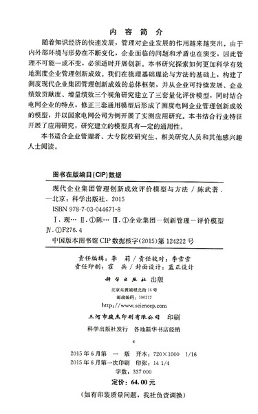 现代企业集团管理创新成效评价模型与方法(国网能源研究院专著)