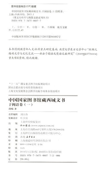 中国国家图书馆藏西域文书(于阗语卷1)(精)/梵文贝叶经与佛教文献系列丛书