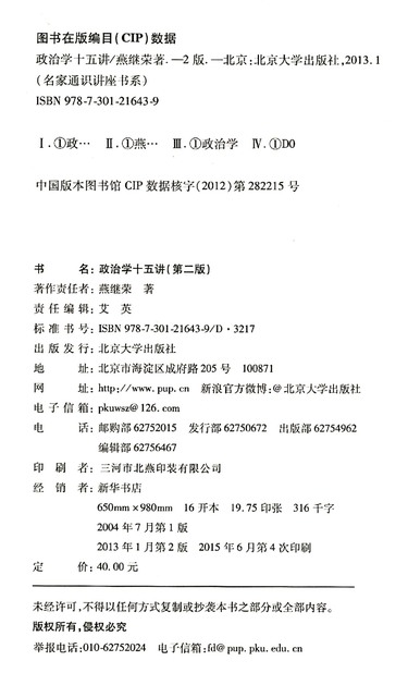 政治学十五讲(第2版)/名家通识讲座书系