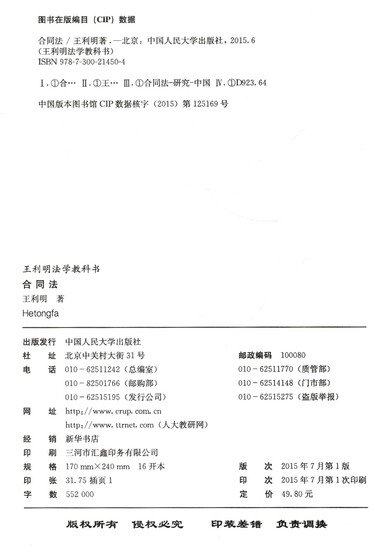 合同法/王利明法学教科书
