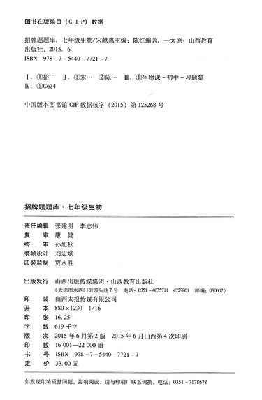 七年级生物(第2版)/招牌题题库