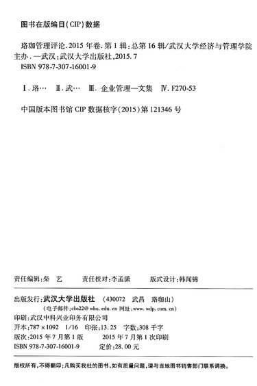 珞珈管理评论(2015年卷第1辑总第16辑)