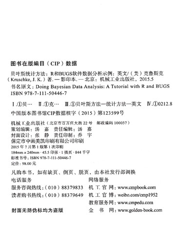 贝叶斯统计方法--R和BUGS软件数据分析示例(影印版)/国外实用统计丛书