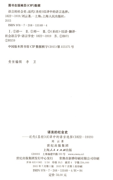 语言的社会史(近代圣经汉译中的语言选择1822-1919)