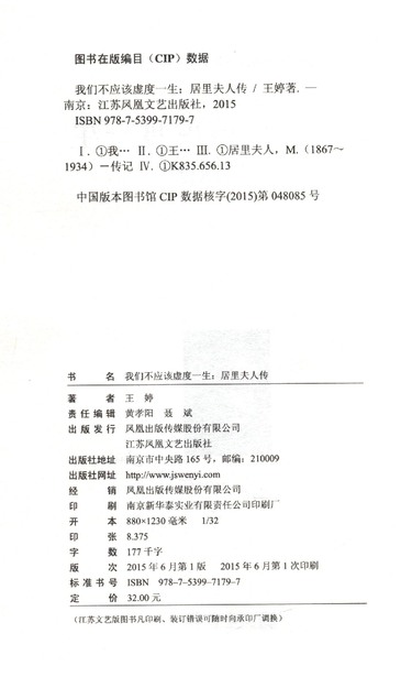 我们不应该虚度一生(居里夫人传)/诺贝尔奖得主传记丛书