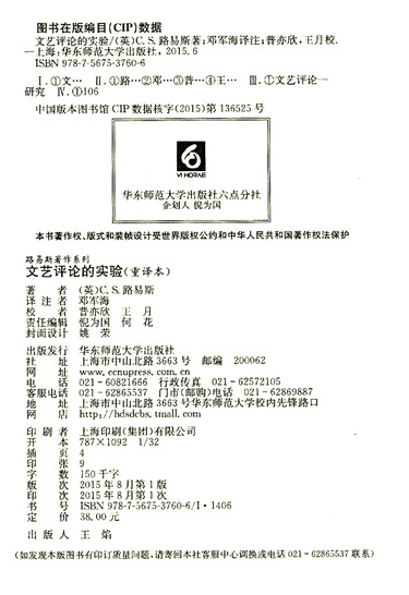 文艺评论的实验(重译本)(精)/路易斯著作系列
