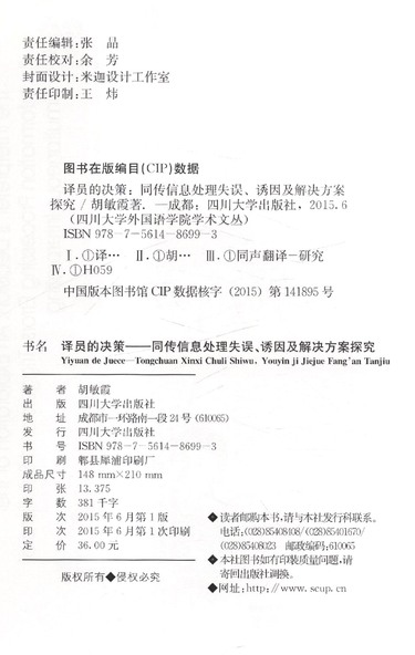 译员的决策--同传信息处理失误诱因及解决方案探究/四川大学外国语学院学术文丛