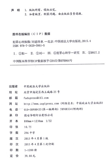 犯罪心理探微/中国政法大学社会学院十周年院庆丛书