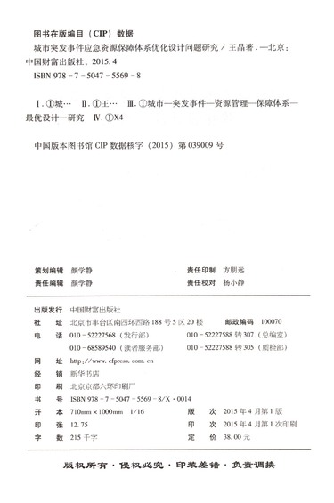 城市突发事件应急资源保障体系优化设计问题研究