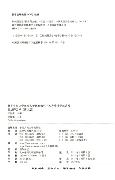 组织行为学(第2版教育部经济管理类主干课程教材)/人力资源管理系列