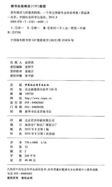 | 出版社 | 中国社会科学出版社 |