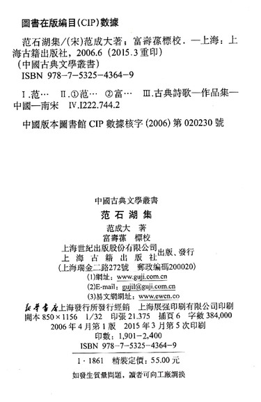 范石湖集(精)/中国古典文学丛书